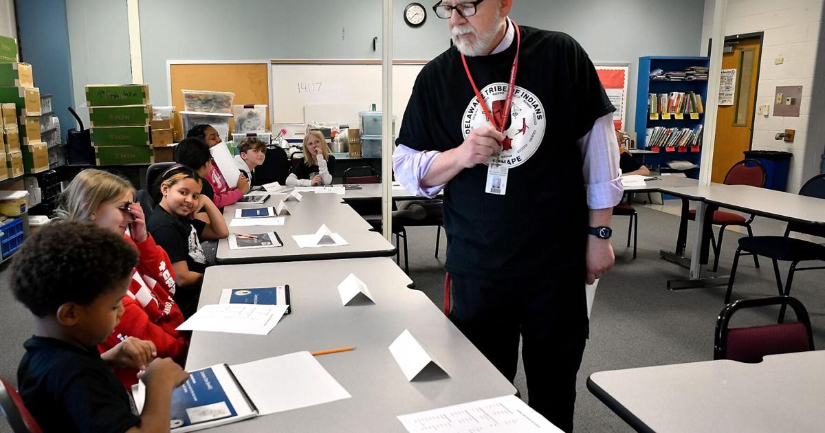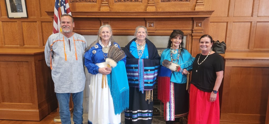 The Lenape of Oklahoma wearing a traditional outfit at West Chester University. (BILL RETTEW/MEDIANEWS GROUP)