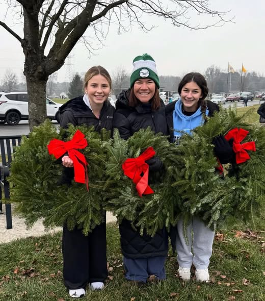 Rachel Belville, her family, and two members of the Yellow Ribbon Club – Nicole Lain and Gracie DeMaise – at Shawnee High School recently participated in Wreaths of Remembrance at the Gloucester County Veterans Cemetery. They worked along hundreds of volunteers to honor veterans by placing 4,000 wreaths on the graves while saying words of gratitude to honor the deceased veterans.